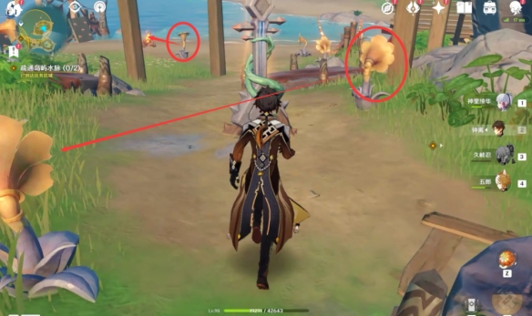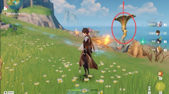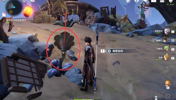 在這個浮島之上,我們首先將此處的喇叭花調整到如圖所示的位置,再去激活音奏樹,通過音符的傳遞解鎖風場。