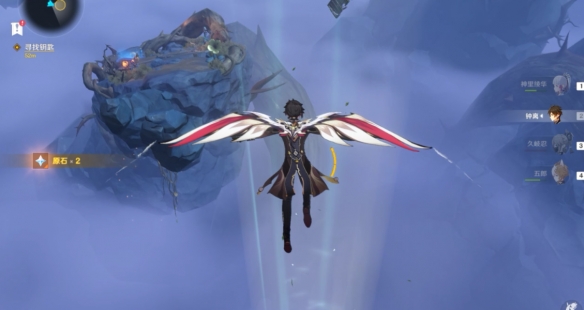 隨著風場進入下一個浮島上,在一番劇情對話之後,我們就在腳邊發現了一個普通寶箱,拾取寶箱之後,我們往風場的方向跳前往下一個浮島。