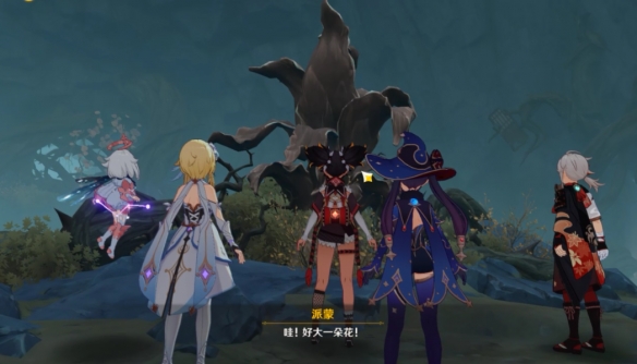 進入第二層秘境之後我們沿著通道一路往前行走在前方發現了一顆巨大且會說話的花朵,根據花朵的指引,我們需要在山上找到山泉來幫助花朵恢復歌聲。