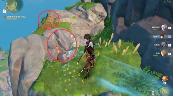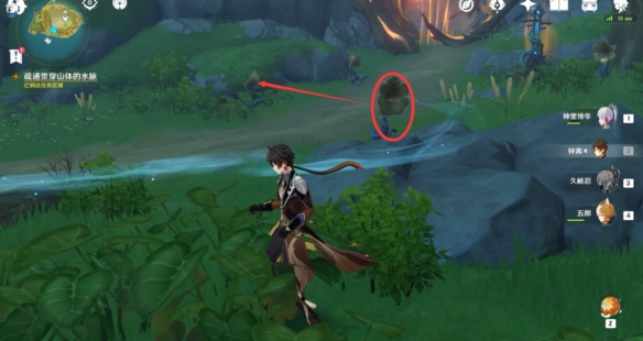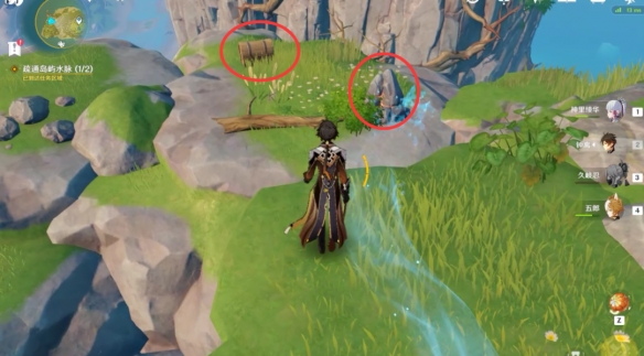 之後按照水脈的方向一路走到山頂上,擊破阻隔的石塊之後再撿取裸露的寶箱。