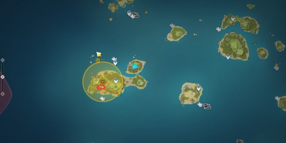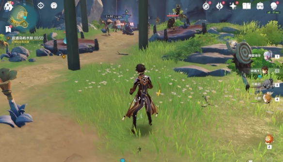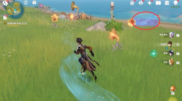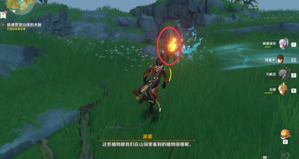根據任務提示,我們還需要破除兩處水脈的阻隔,首先跟隨水脈的指引我們來到地圖上的這個位置發現一個丘丘人的營地。