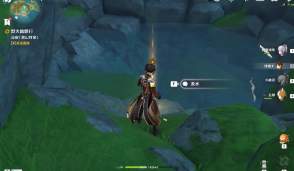 待水灌滿山體之後獲取寒山甘泉。之後再通過傳送點的小鼓處回到秘境。