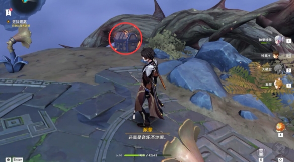 激活旁邊的音律樹激活風場乘風而起來到上層之後,敲擊在路邊的小鼓激活通道。