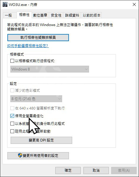 2.停用:全熒幕最佳化