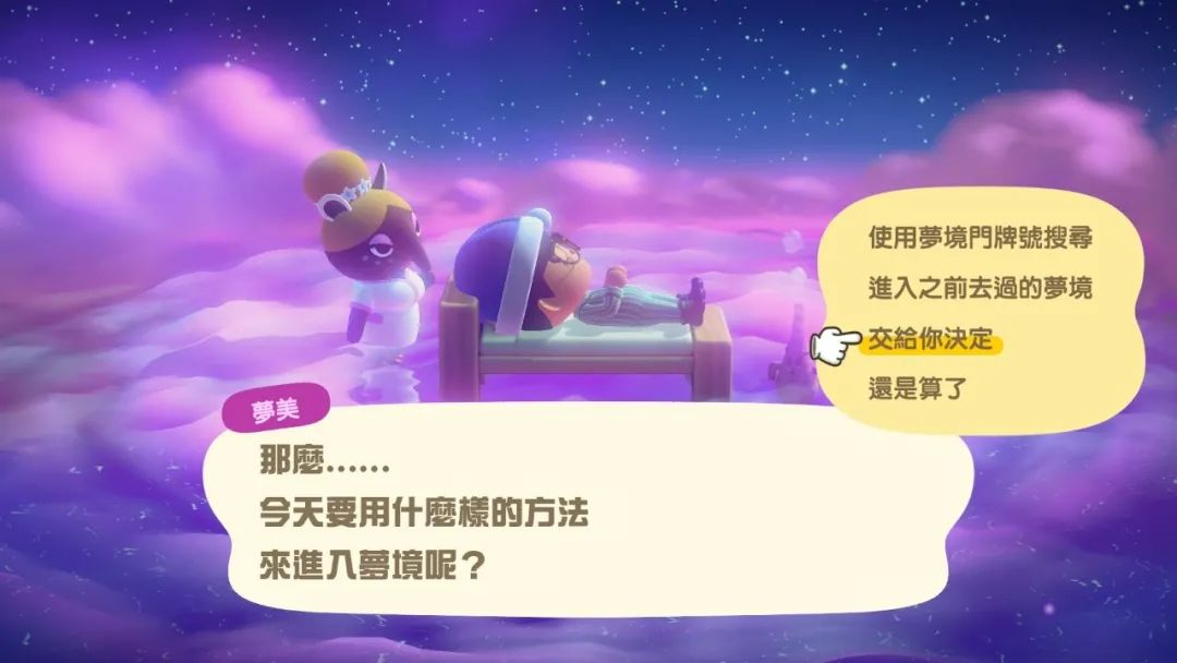 進行本次更新,可交給「夢美」決定所參觀的島嶼夢境。「夢美」會從收集到的島嶼夢境中選一個,即使不知道「夢境門牌號」,也可以隨意輕鬆地參觀夢境。如果希望自己的島嶼作為「交給你決定」的候選,允許任何人參觀的話,請設為公開吧。