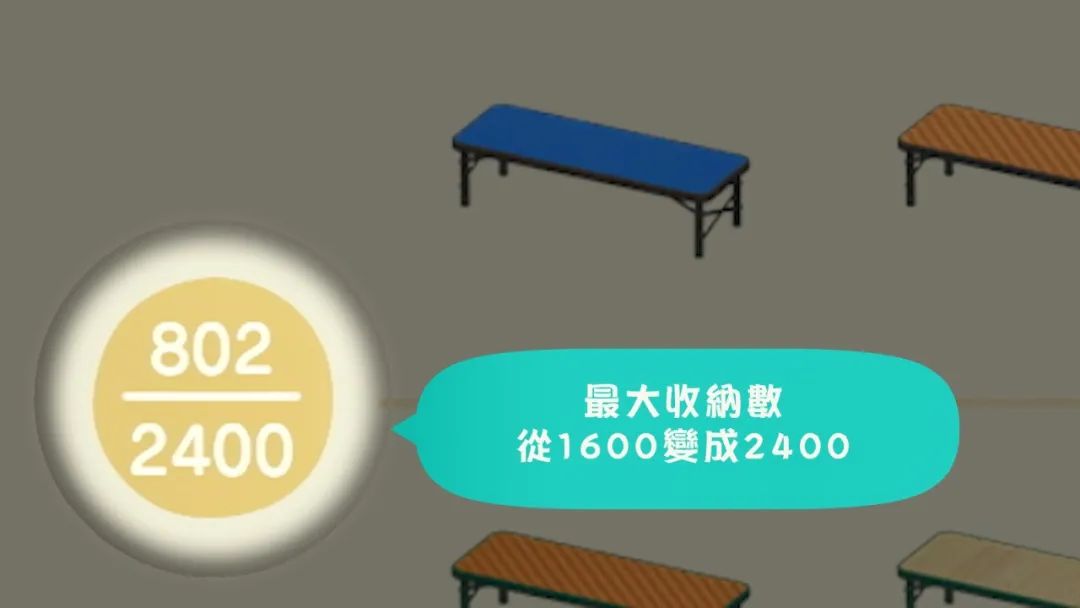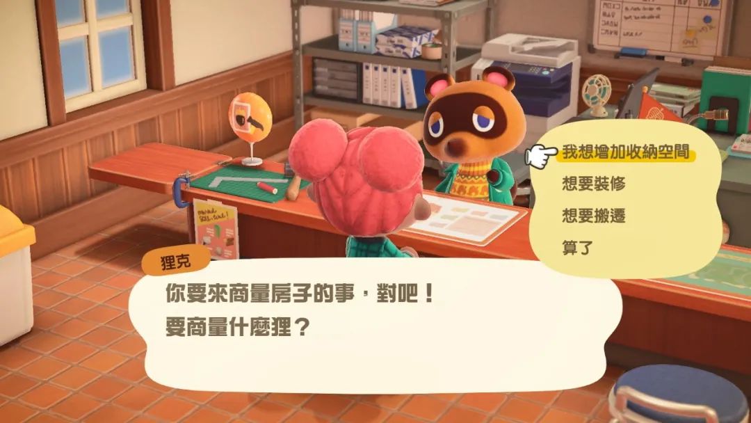 已經把我的房子擴建到最大,而且已經償還全部貸款的玩家,可與狸克商量「增加收納數」。最大收納數將從 1600 變成 2400,可以收納更多傢具和服裝!