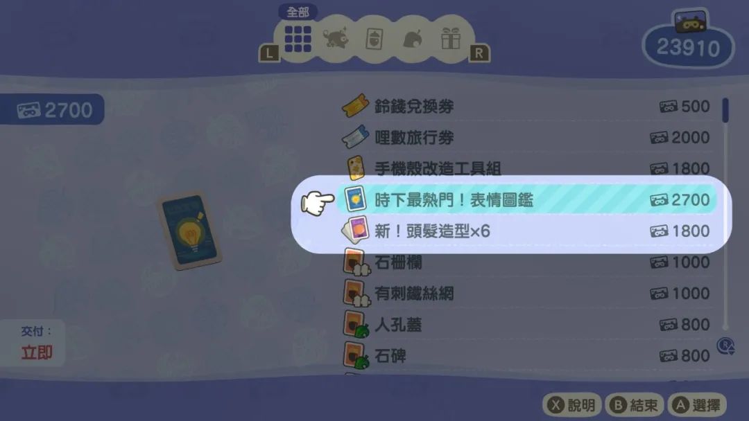 兌換「時下最熱門!表情圖鑒」之後,即可學習全新的 9 種新表情!請在與島上的居民、朋友交流時好好利用吧。