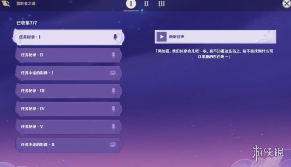 注意:密錄Ⅱ(需要爬山),任務中途的影像Ⅲ(山上傳送點旁邊),中央營地的影像Ⅰ(山上)