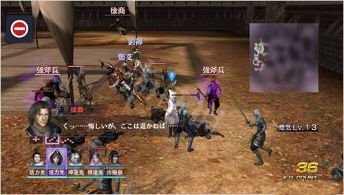 另外一個是招人,前面已經說過,游戲一開始的時候只有玩家開始選的5個人,進入戰場後,每場會有4-8個無雙武將,擊破無雙武將之後,有機會獲得xxxx之緣,拿到這些緣,和看板娘對話,那麼xxxx就會變成可選的人物,收集所有武將變為可操作角色也關係到一個獎盃。