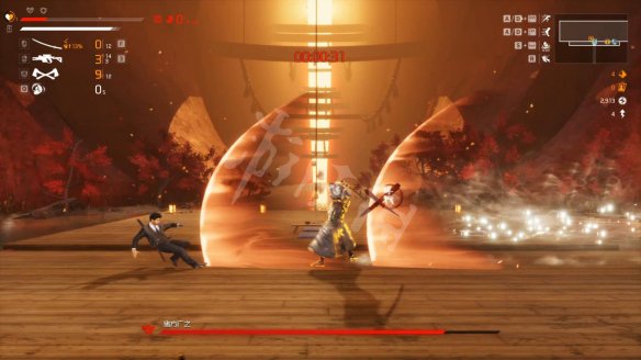 在boss戰前搜集好帶擊飛性質的遠程武器,例如飛斧,沙漠之鷹,這種道具或者槍械,和他拉開距離,然後請他吃一斧頭,他會被擊飛,然後起身給你來一個波動斬,閃避之後再拉開距離,繼續重復以上操作,就能輕松撐下一分鐘。