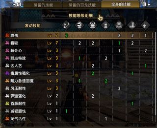 善用版頭的配裝器,它可以讓你根據你需要的技能來自動尋找最合適的裝備部件,非常方便。每個人都有不同的狩獵習慣,這里給出的是個人使用的技能。