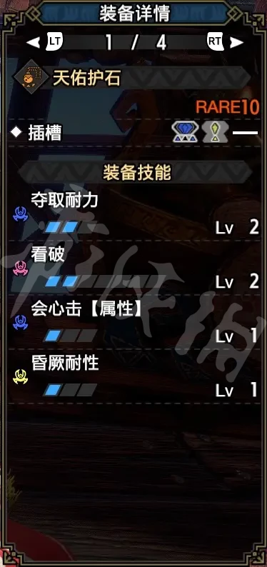 弱點特效2:有S2插槽的推薦,胸換電龍胸,腳換飛雷龍腳,優先滿看破,剩餘孔位自由調整。