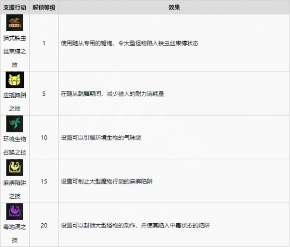 隨著等級的提升,隨從貓可以解鎖更多的支援行動。