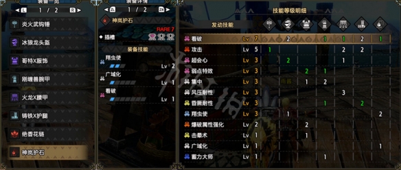 護石可以說是沒有要求,只需要1級看破,剩餘技能看個人護石情況決定,我這裡填補的是翔蟲3級以減少天地衝撞的CD時間,也可以考慮保命技能如迴避距離等。