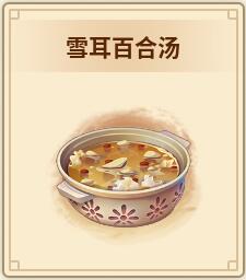 銀耳、百合用水浸泡後煮至爛熟後,加糖飲用。具有滋陰潤肺的功效。