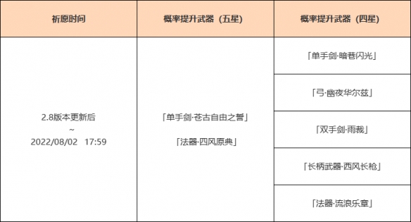 ●活動期間,限定五星武器「單手劍·蒼古自由之誓」、五星武器「法器·四風原典」的祈願獲取概率將大幅提升!