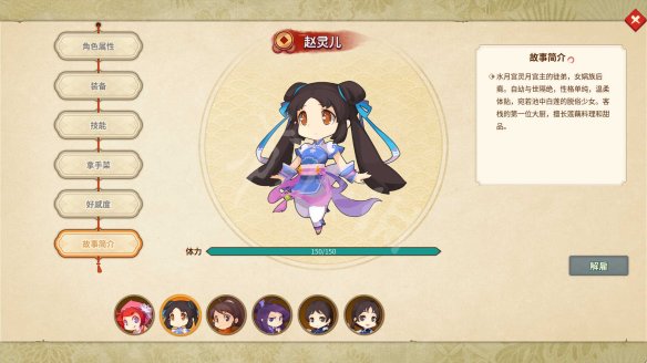 能一次拿2個盤子而臨危不亂。李逍遙的技能適合跑堂,他的速度屬性也比較高。