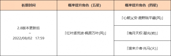 ●活動期間,限定五星角色「紅葉逐荒波·楓原萬葉(風)」的祈願獲取概率將大幅提升!