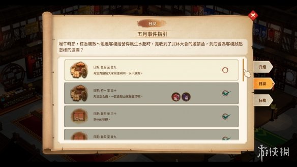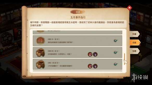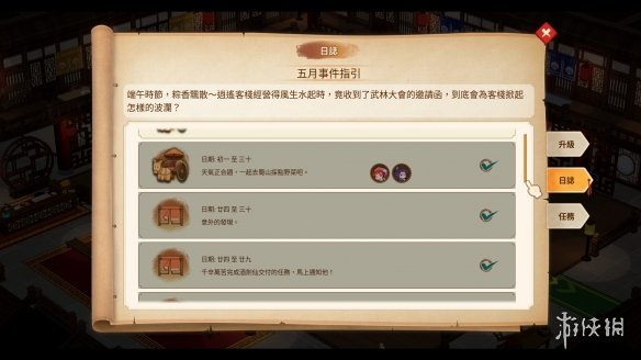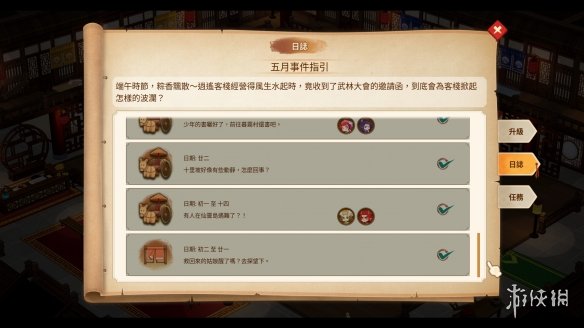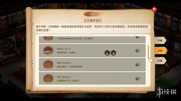 在經營自己的小客棧時,是按照時間線進行的,不同月份有不同的的日誌事件發生,那麼在五月份時會有哪些日誌事件呢,這裡給大家整理了仙劍客棧2五月日誌事件一覽,一起來看下吧。