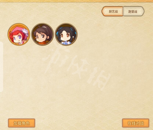 本作聯機對戰模式有兩種,分別為廚藝戰和跑堂戰,可以點擊左下角載入角色,選擇自己已有的存檔,並點擊上方角色頭像選擇對應階段的角色。點擊右下角在線對戰後即可進入房間列表,可以選擇快速配隊或者自己建房。