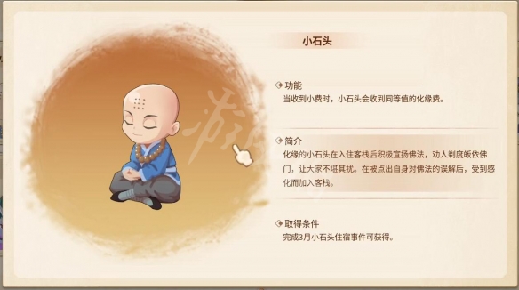 化緣的小石頭在入住客棧後積極宣揚佛法,勸人剃度皈依佛門,讓大家不堪其擾。在被點出自身對佛法的誤解後,受到感化而加入客棧。