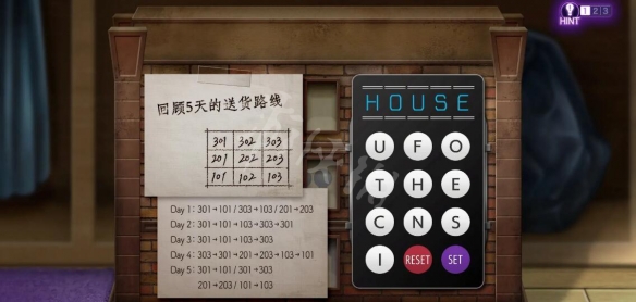 1.前往C房間,調查密碼箱,輸入HOUSE解密;