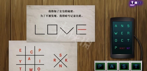 1.前往D房間,調查大圓桌上的紙,輸入PAST解密;