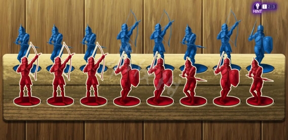 2.調查右側小桌上的紅藍模型,調動紅色為「弓弓弓劍劍槍劍槍」解密;