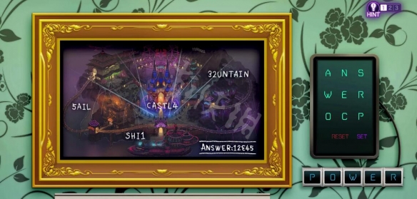 3.前往F房間,調查左側紫色畫畫框,輸入POWER解密;