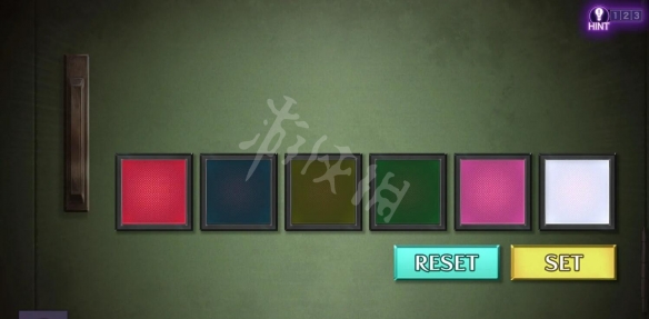 4.調查電閘旁櫃子帶有彩色的格子,激活紅、粉、白解密;