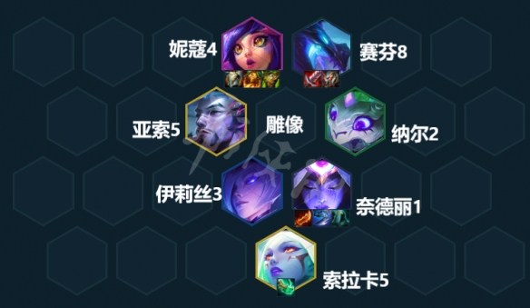 索拉卡在兩種變陣的情況下都可以替代塔里克開3玉龍並提供穩定的回血效果,玉龍變陣中的錘石和幽影變陣中的塞拉斯都可以用亞索/巴德/派克等高費卡替換。