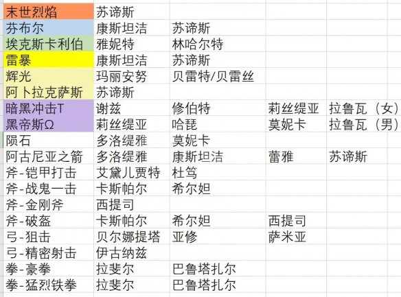 為了方便查看,匯總了威力為大的戰技魔法可傳授教師名單。