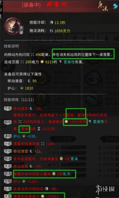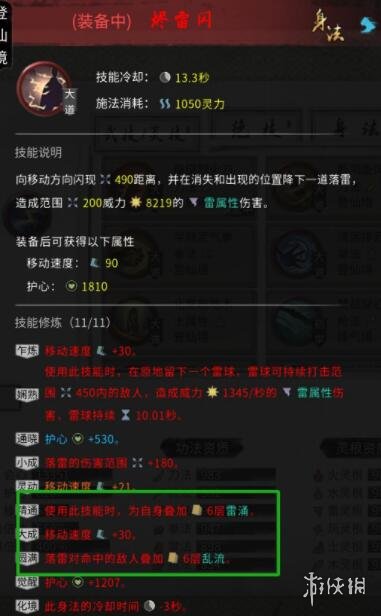 這樣,在開啟神通,並且大法有-25%身法詞條的情況下,實測雷身法冷卻時間是2秒一個,算是低配版的水劍了,由於雷身法,有加雷涌和亂流的詞條,所以雷系左鍵建議放棄。