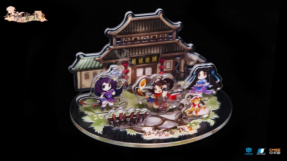 多場景人物主題亞克力擺件包含主題底座1個,逍遙客棧及情人樹2個背景,小蠻、龍幽、李逍遙、趙靈兒、林月如5個人物,御靈錦八爺1個,其他道具2個。材質強度高,顏色清晰細膩。