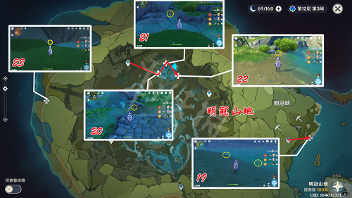 採集點19~22,預估耗時1分整,共計5朵嘟嘟蓮。