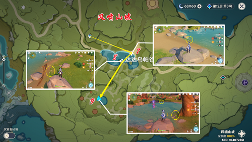 採集點1~6,預估耗時1分半,共計13朵嘟嘟蓮。