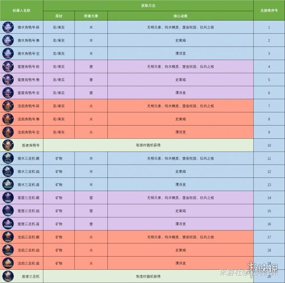 全部機器人獲取方法圖表(最多隻能兌換4個)
