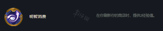 明智消費的效果是在玩家每次刷新商店時提供2經驗值,很適合偏運營的九五陣容來選擇,或者是三費的偏賭性質的陣容,配合這個符文的效果在d牌時還能享受經驗值加成。需要注意的是這個符文如果在開局的時候選到最好看看其他人都選了什麼類型的符文效果。明智消費在比較之下會比其他符文在前中期的時候強度稍微次一點,如果對局中低費賭狗比較多很容易前期被血入。比較保險的玩法就是卡50利息d牌一邊提升打工牌質量一邊上人口幫助連勝。