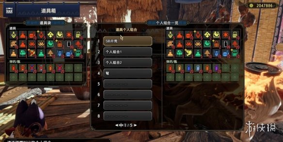 還是和本體差不多,我的道具袋在下面,近戰遠程都有,瓶子拉滿,秘葯拉滿,探索地圖用的爆桶也帶了。陷阱帶滿,盡量捕獲,千萬不要忘了爪子和護符。