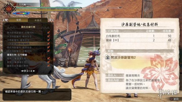 白兔獸的毛可以從下位的白兔獸身上狩獵到,收集完以後回報任務就可以開啟此營地。