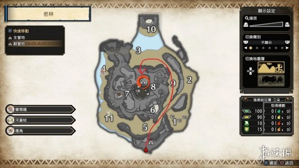 水沒林上層地圖基本上都是毒狗龍,很簡單就可以找到,狩獵完後回報任務就可以開啟此營地。