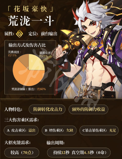 原神是一款由米哈游開發的開放世界冒險遊戲,遊戲中被神選中的人將被授予神之眼,導引元素之力。玩家將扮演旅行者,在冒險旅行中探險和游覽這個世界,在遊玩過程中,官方也是定期更新發布新的角色,如這次更新了荒瀧一斗,而對於荒瀧一斗可能小夥伴們不清楚他的輸出能力以及相搭配的輔助隊友,因此小編在這里給大家帶來了荒瀧一斗的陣容搭配。