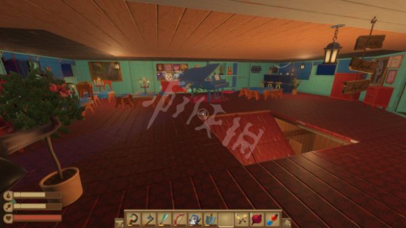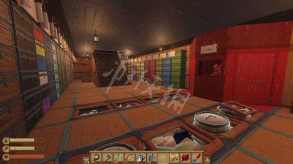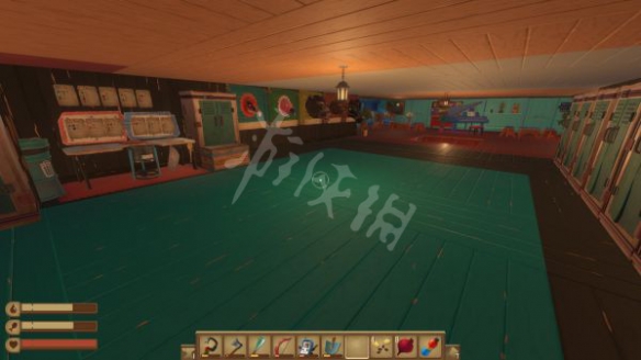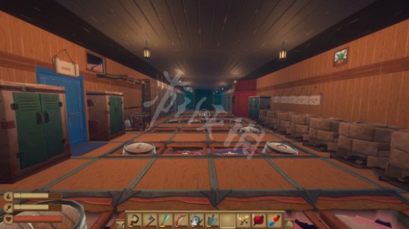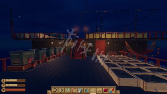 船艙底部是第一層,是一個捕撈網、熔爐和一大堆儲藏箱的區域。藍色門是機械室,紅色門是船錨室,隔著窗子可以直接控制船錨。