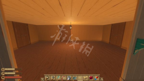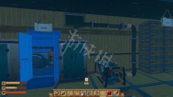 機械室裡面隱藏了燃料桶和裝燃料的便攜塑料箱,左側的門是通往外面的,右側的門通往船艙底部。