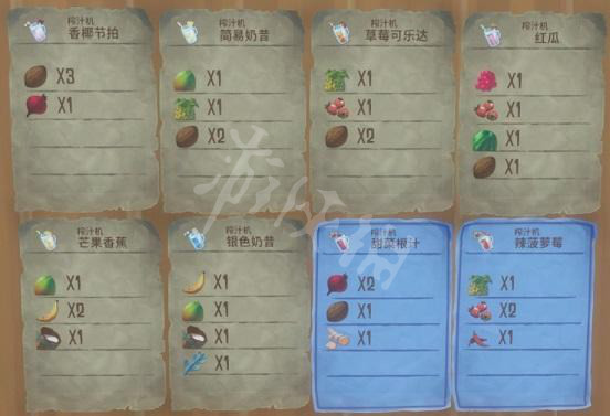 木筏求生食譜配方有料理和果汁兩類,不同配方的果汁數據也有所不同,有些玩家對各種果汁的水份不是很了解,這里給大家帶來了raft果汁配方屬性分享,一起來下文中具體內容吧。