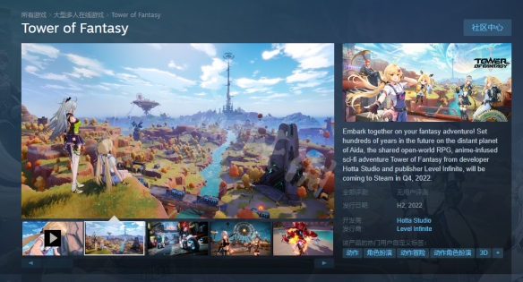 遊戲的steam名字為:Tower of Fantasy,直接在搜索欄內就可以搜索到了。