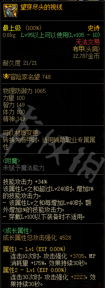 dnf望穿盡頭的視線是MP流派核心搭配之一,俗稱連擊肩