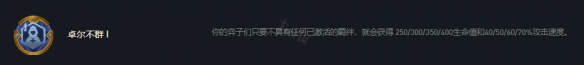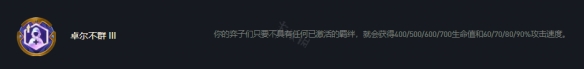 卓爾不群有銀金彩三個階級的強化符文。目前版本的卓爾不群提供的數值加成也會根據棋子的星級來逐級提升。彩色卓爾不群需要謹慎選擇,在彩色強化符文比較多的情況下不太好保證連勝。