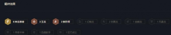這是有神龍尊者之心加一個神龍尊者轉職的情況下,8人口就可以湊出9神龍尊者加3玉龍和2換形師,卡爾瑪的法強可以突破400,一個技能傷害在無盡法爆加持下可以高達2000,同時還有高額的生命值和玉龍回血,卡爾瑪即使面對刺客也毫無畏懼。