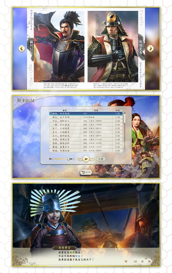 ※“數字版原聲帶音樂”、“數字版KOU SHIBUSAWA秘傳攻略數據&武將畫冊”在游戲中的“鑒賞”菜單內解鎖後便可進行鑒賞。